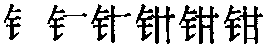 【提示】钅,5画,第二笔是横,不要写成侧点,第五笔是竖提,不是一竖、一提两笔。甘中间的横,宋体与左右两边相接,楷体与左边相接,与右边相离。 *钳(鉗)qián10画 金部 (1) 古代的一种刑具,束颈的铁圈。 (2) 限制;约束: ~口|~制。 (3) 夹东西的工具: ~子|老虎~。 钳qián小篆以来的形声字。从钅(金),甘声。声母演变如甘嵌箝(qián)、工空腔、高敲例。本指古代一种刑具,是捆着脖子的铁圈。引申指夹东西的用具。如:老虎钳。转为动词,指用东西夹住。组词如:钳制(指用强力限制)。古代又有箝字。从竹,从拑(从手,甘声。读qián,也夹住义),拑亦声。本夹住义。又转为名词,同钳。 钳鉗★繁◎常★常