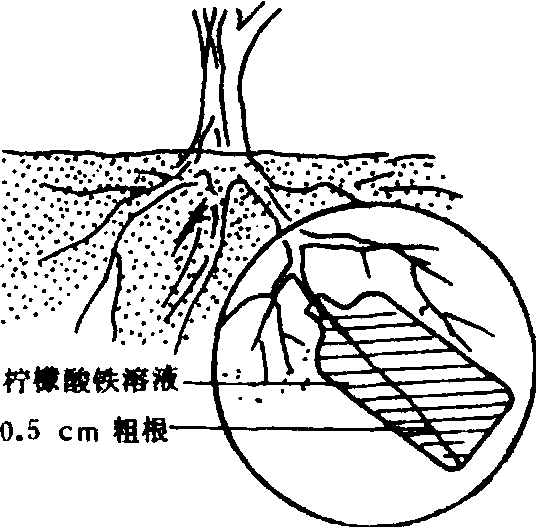 \\ 柠檬酸铁的根际埋瓶施肥示意图