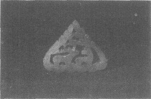 | 释义 | 镂雕双鹿玉牌饰 镂雕双鹿玉牌饰金。高3.5厘米,底宽3.9厘米。1974年黑龙江省绥化县奥里米古城周围墓葬出土。黑龙江省博物馆藏。白色玉料,半透明,局部有黄浸,形制类似三角形。两树相交构成三角形边缘,树下透雕两鹿。雄鹿长角,头微昂前视,其前方一雌鹿,回首与雄鹿呼应,上部碾有一展翅飞翔的鸟。取材来源于生活,山村、草原、动植物给作者以灵感,经艺术加工后巧妙地浓缩于这件小小的饰件上,表现出一派山野情趣,给人以丰富的联想。