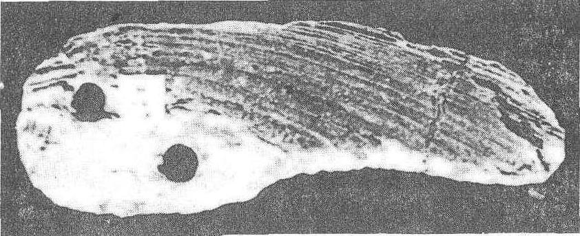 图1 河南新郑裴李岗出土石镰 绑在木柄上才能使用。在河北武安磁山和河南新郑裴李岗新石器时代遗址都发现距今约8000年的石镰,制
