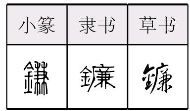 图4 河北兴隆出土战国铁镰范 并不太大,一直沿用至今。但由于不同的作业需要,也出现几种特殊用途的镰刀。如汉代发明一种专门用来收割禾草和撒播作物的䥽镰。 䥽镰是种两边有刃的大镰刀,双手执握用以砍削禾秸。四川、湖北汉墓中都出土过䥽镰,四川出土的东汉画像砖上也有使用䥽镰的画面。 《说文解字》:“䥽,两刃,木柄,可以刈草。”王祯《农书·铚艾门》亦说:“䥽,两刃刈也。 其刃长余二尺,阔可三寸,横插长木柄内,牢以逆楔。农人两手执之,遇草莱或麦禾等稼,折腰展臂,匝地芟之,柄头仍用掠草杖,以聚所芟之物,使易收束。”至宋元时期又发明一种收割工具叫推镰。虽也叫镰,但已与普通镰刀大不相同,而是把长条形铁刀装在带有两个轮子的架上,后有长柄,使用时奋力向前推去,可铲割作物。这已是一种收割机械。镰鐮lián一种收割农作物和割草的农具。由柄和刀片构成。 镰[鎌]lián (镰刀) sickle 镰农具。东周楚墓中青铜镰均为弧形背,斜锯齿。有的镰一侧有銎,用于装木柄。有的则无銎,用木柄夹住镰头的一侧。下寺楚墓出土的铜镰背部和銎上部有精美的花纹。 镰鐮;鐮;鎌lián(18画) *镰(鐮)〔鎌 |