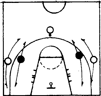 ❸球动人(对手)不动的选位练习;人动球不动的选位练习;防纵切练习;防底线摆脱练习。以上练习根据球和人的移动选择有利位置,并积极移动,堵截对手的传接球路线。