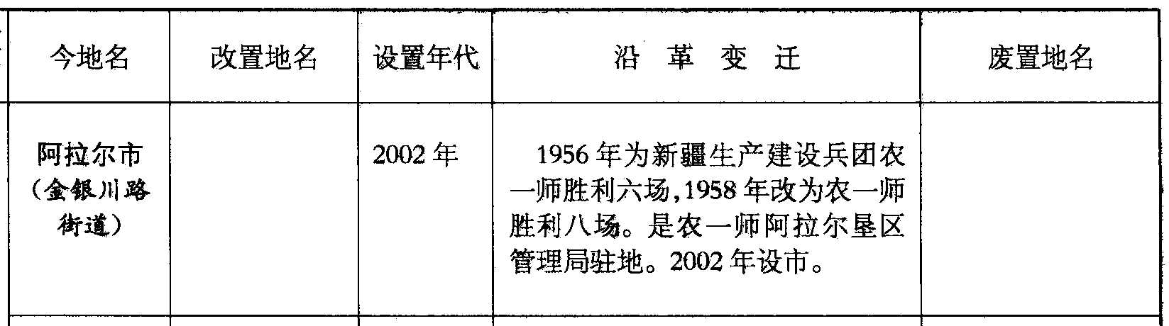 阿拉尔市(金银川路街道)2002年1956年为新疆生产建设兵团农一师胜利六场,1958年改为农一师胜利八场。是农一师阿拉尔垦区管理局驻地。2002年设市。