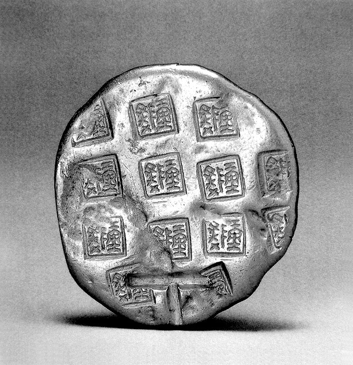 | 释义 | 陈爰金版 陈爰金版chenyuanjin ban战国金币。亦称陈爯金钣。1972年咸阳市窑店公社(今渭城区窑店镇)路家坡村北约1公里处出土。共8块,其中圆饼形3块,直径6.1厘米~6.6厘米,厚0.5厘米,重249克~250克。瓦形或不规则形5块,瓦形长6.4厘米,宽5厘米;不规则形长7厘米,宽6.3厘米,重230克~265克。含金量均在95%~96%之间。每块金版上戳有10个~17个方形印记,印记为楚国文字“陈爰”。“陈爰”是战国时楚国爰金之一。“陈”为楚国大城,在今河南省淮阳市。此金版存世极少,外地未发现完整者。现藏咸阳博物馆。