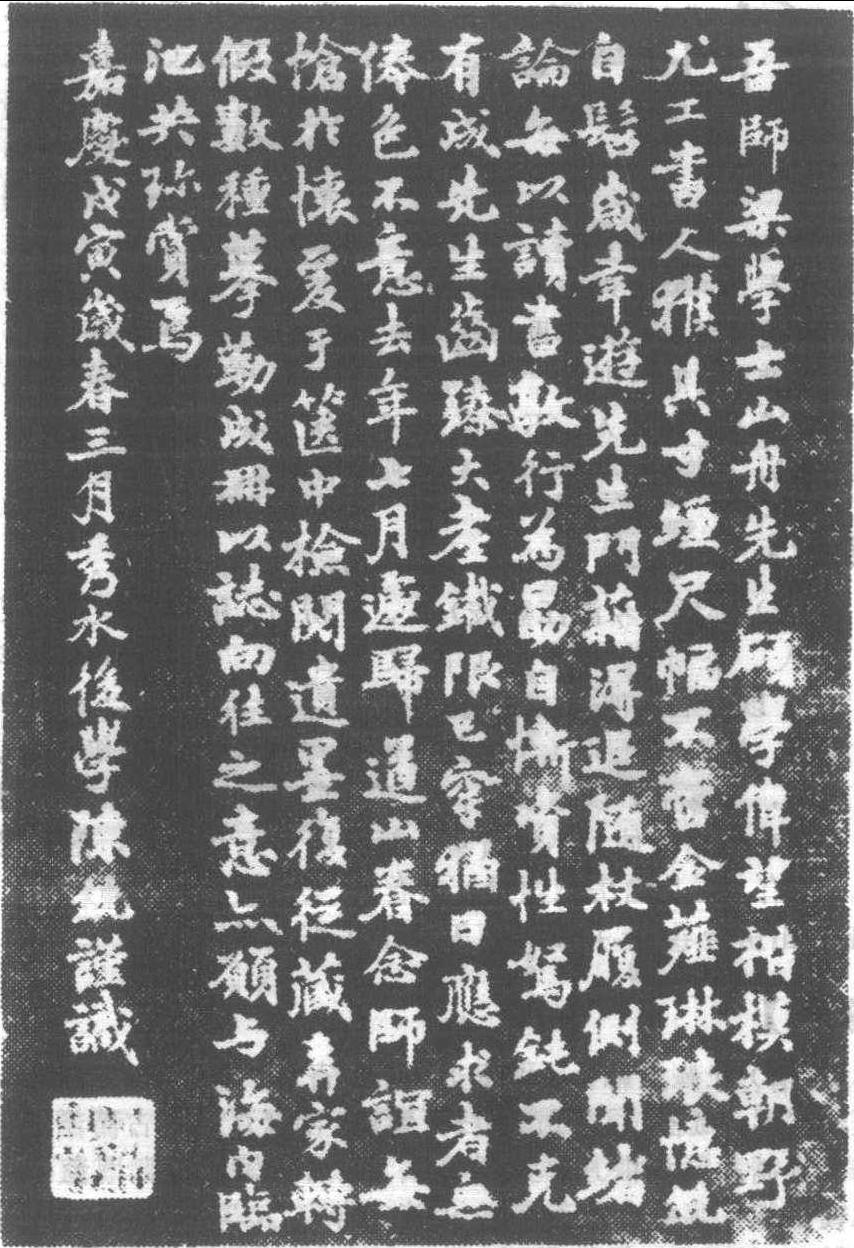 陳銑·瓣香樓法帖跋文 (清·乾隆五十年——咸豐九年 1785~1859)秀水(今浙江嘉興)人。字蓮汀,居室曰瓣香樓。受業梁同書,好古,精鑒藏,工書、畫。清蔣寳齡《墨林今話》曰:“蓮汀善書法,少即游山舟 (梁同書)學士之門,親受秘訣,往返尤密,故所詣入神。”畫得翟繼昌親授,下筆邁古有金石氣,工寫生,尤長梅作小品。張問陶謂其卷軸中沉浸而出,斷非凡手可及。匯刻梁同書之書迹,成《瓣香樓梁帖》六卷。梁山舟《頻羅庵論書》一卷有簡札四通,其中一通答蓮汀問。 |