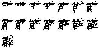【提示】雨字头中间一竖两边宋体各是两个短横,楷体各是两个侧点。辛,中间一横长,下面一横短,不要写成中间横短下横长。 *霹pī21画 雨部 【霹雳】(—lì)响声很大的雷。 霹pī古代无霹字雳字。作辟历或劈历。本是象声词,象雷声。指响声很大的雷。中古加雨头作霹雳。由于与雷雨有关。近代现代也说“劈雷”。霹字也单用,转为动词,现多用劈字。 霹★常◎常pī形声,从雨,辟声,用于“霹雳”,一种强烈的雷电现象,响声很大,比喻来势迅猛。 |