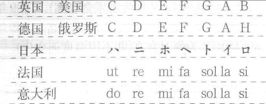 ☚ 十二平均律 唱名 ☛ 音名 音名Yinming对音乐中使用的乐音所定的名称。由于世界各国历史、文化、文字及音乐中使用音律的不同,所用音名也各异。近代较多采用英、美等国的字母体系。如,C、D、E、F、G、A、B (德国为H),升降各音名可使用升降记号 (见变音记号) 如#F、bB等。中国古代十二律的名称亦为音名。各律的名称为:黄钟、大吕、太簇、夹钟、姑洗、仲吕、蕤宾、林钟、夷则、南吕、无射、应钟。 ☚ 音列 唱名 ☛ 音名 音名指7个基本音级的名称,它们是有固定音高的(在五线谱和键盘上的位置见上例)。7个基本音级不断循环重复,构成整个乐音体系。各国所用的音名各异,大多用字母体系,亦有用唱名体系。见下表: