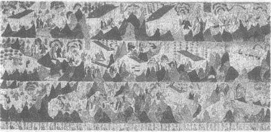 北周。纵185厘米,横420厘米。甘肃省敦煌县莫高窟第428窟东壁北侧壁画。叶波国太子名须达拏,乐善好施,有求必应。敌国收买婆罗门八人,向他乞讨百战百胜的大象,太子慨然相赠,国王闻听大臣的禀报后大怒,将太子驱逐出国。太子携妻儿出走的路上,不断遇到乞讨者,遂将车、马、衣物一一施舍。到檀特山中结庐隐居修行后,有婆罗门来要其两个儿子,须达拏趁妻不在将儿子交与婆罗门,妻归来后哀恸欲绝。婆罗门将孩子带到叶波国正待出售,国王知情后心受感动而赎回孙子,并派大臣将太子迎回。此窟东壁绘有连环画形式的故事场面,依情节发展从上至下呈“己”形构图,描绘出从施象到施子的主要情节中的十几个场面,内容丰富,绘制细腻。