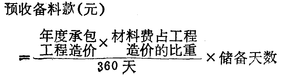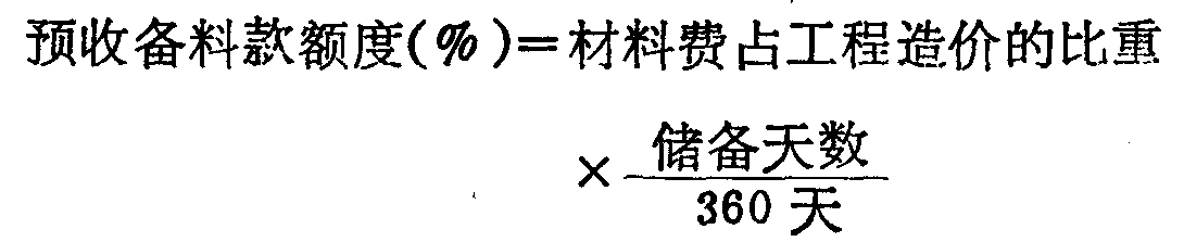 | 释义 | 预收备料款额度企业向建设单位预收备料款占承包工程造价的比重。一般不应超过年度承包工程所需材料价值的三分之一,即相当于四个月(120天)的储备量。其计算公式为: