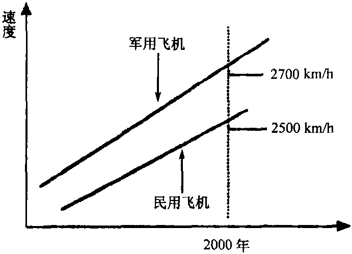 利用经济现象之间存在的各种内在联系,由领先指标的发展推导出迟发事件的特性,预测迟发事件的发展状况的方法。领先指标预测法将各种经济事件分为三种类型:(1)领先指标;(2)同步指标;(3)滞后指标。根据这一分类,可以通过领先指标预测同步指标或滞后指标的发展。领先指标预测法的具体预测步骤为:(1)首先根据预测要求找出领先指标,例如以预测民用飞机飞行速度为目的,可以军用飞机的发展速度为领先指标。(2)将两种或多种经济指标的时间序列变化状况描绘出来。如图11-10所示,民用飞机相对于军用飞机的速度,在1950年时滞后18年,1960年时滞后23年;1970年时滞后28年。(3)进行预测。根据领先指标的时间发展,可以测出滞后指标的发展状况,由图11-10可知在2000年左右,会有2500km/h的民用飞机出现。