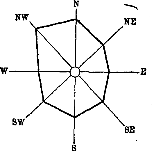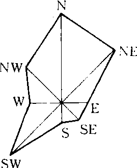 | 释义 | 风玫瑰图wind rose在极坐标底图上绘出某一地点在某一时段内各种风向出现频率或各种风向的平均风速的统计图。因图形似玫瑰花朵而得名,前者称“风向玫瑰图”,后者称“风速玫瑰图”。绘制风向玫瑰图的方法:在8个或16个方位上,按一定的比例标出各个方位上风的频率,连结各点成一封闭折线。频率最大的方位,表示该风向出现次数最多。用类似的方法也可点绘出各个方位的风速,得出风速玫瑰图。图中从中心至各方位的射线长度,可用以表示风向频率,也可用以表示该方位的平均风速。