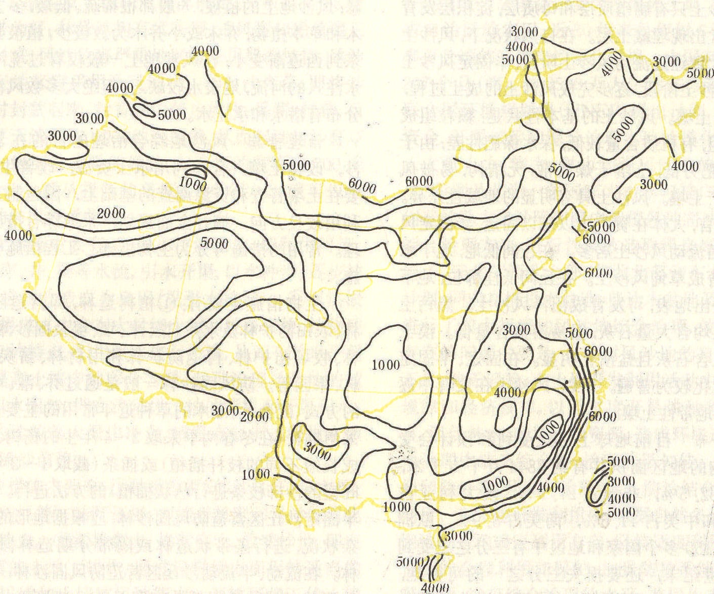 图1 中国风能有效能量密度分布图(瓦/米2) 中国风能丰富区主要分布在东南沿海、内蒙阴山山脉以北的广大地区、松花江下游地区、山东半岛和辽东半岛的沿海,以及内陆的一些山口峡谷地区,如新疆的达板城、阿拉山口等,仅占全国面积的8%。较丰富区分布在东部沿海、三北(东北、华北、西北)地区的北部以及青藏高原的北部,约占全国面积的18%。可利用区的面积约占全国总面积的50%,这一地区在冬半年风速较大, 夏半年风速较小, 亦可称为季节利用区,分布在辽河下游、黄河、淮河流域、长江上下游以及广东、广西沿海、青藏高原东北部和南部、南疆大部和大兴安岭地区。贫乏区以四川为中心向外扩展,包括陕西南部、湖北和湖南的西部、云贵高原的一部分,以及广西、广东、福建的山地,雅鲁藏布江河谷和塔里木盆地。 风的能量计算 按动能公式计算如下: