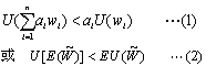 考虑一个以 形式描述的抽彩问题。假设消费者有两种选择。选择Ⅰ:以概率a得到w1,以概率(1-a)得到w2;选择Ⅱ: 以无风险的确定方式得到