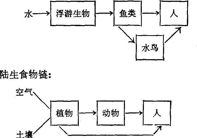 在自然界每一生态系统中有许多食物链,在食物链的这一环与那一环之间,并非简单的继承关系,一种消费者常常不是只吃一种食物,或同一种食物可能被不同种的消费者所食。因此自然界的食物关系是互相联结,错综复杂的交织在一起,形成网络关系,这种关系称为食物网。环境中的化学物质通过食物链、食物网逐步转移、积累、富集,可提高到千百万倍而后进入人体。这在环境污染物的转移及对人体健康影响上,都具有极为重要的意义。