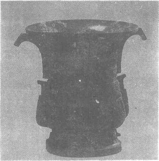 商。盛酒器。通高20厘米,口径23厘米,腹深16厘米。重3公斤。1964年陕西省清涧县张家坬出土。陕西省清涧县文化馆藏。此尊侈口,鼓腹,圈足。肩饰兽首三具,兽首间配饰夔龙。腹部饰饕餮纹,旁边附两鸟。圈足上有三个方形镂孔,其间各饰饕餮纹一组。通体以细云纹填地。此器精雕细刻,一丝不苟,充分表现了商代中期青铜器工艺的卓越成就。