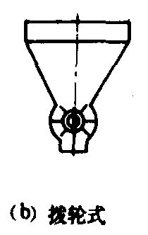 图1 容积式计量器 螺旋式计量器 由料槽和装在槽内的排料螺旋构成。槽的一端为进料口,另一端为出料口,槽内饲料的排出量与螺旋的旋转角度成一定的比例关系。工作时,驱动链轮每转1转,螺旋旋转一定的角度,从而排出所要求的饲料数量。在螺旋轴的驱动器上装有带刻度盘的调位手轮和一套棘轮调节机构,以便控制螺旋的转角。 拨轮式计量器 由方形料斗和装在斗内的带槽拨轮构成。工作时,拨轮定时旋转一定角度,将料斗内饲料排出,其排出量与拨轮的转角成正比。拨轮转角的调节机构与螺旋式计量器类似。 输送带式计量器 由方形料斗和装在料斗底部的一根传送带构成。工作时,传送带将料斗中的饲料排出。控制料斗侧壁上插门的开启大小,就可得到不同的排料量。 斜盘式计量器 在料斗出料口上有一高度可调节的套管,套管下方有一个旋转圆盘,圆盘上有一块固定不动的刮料板。工作时,旋转的圆盘将从料斗出料口流下的粉料带出,当盘上的粉料遇到刮料板时,即被刮下,从排料口排出。调节圆盘的转速、套管的高度或刮料板的位置就可得到不同的排料量。 重量式计量器 按照饲料的重量进行计量的装置。它由料斗、称量器和卸料门等组成。常见的类型有秤车式、字盘定值式和电子式。此外还有专用于预混合饲料的微量元素配料秤。重量式计量器的计量精度高(约为0.1~1%),但除了秤车式外其他结构都较复杂。一般用于大、中、小型饲料加工厂。 秤车式重量计量器 是装在小车或吊车上的杠杆式秤,秤台上装有料斗。工作时,工人将小车依次推到装有不同品种饲料的各配料仓下,按计量要求预置好砝码,启动给料器,使饲料落入车斗中,当达到预定的重量而秤杆抬起时,关闭给料器。这种计量器由人工操作并要求操作人员工作精心。 字盘定值式计量器 又称字盘定值配料秤,是一种机电结合的计量装置。预先调定后可自动连续计量4~12种配料。它由料斗、杠杆系统、计量表头和控制台等组成(图2),并和相应数量的配料仓和螺旋给料器配合使用。当螺旋给料器将饲料加入料斗,料斗的重量将作用于杠杆系统而使计量表头内的指针转动。计量表头上有环状滑道和12个电感头,电感头可在滑道内滑动。工作前应调定各电感头,即根据1号料的分量将1号电感头对准表盘上的相应称量刻度线,然后将2号电感头对准表盘上某一刻度线,使此刻度线与1号电感头所对的刻度线指示值之差就等于2号料的分量,依此类推。工作时,在1号料加入料斗的过程中,表头内的指针从零位置转向1号电感头,当指针转到与1号电感头指示值相差2~3千克时,1号电感头发出第一个信号,使螺旋加料器由快加料(连续运转)变成慢加料(断续运转);当指针转到与1号电感头重合时,1号电感头发出第二个信号,使1号给料器停止给料并使2号给料器开始快加料。依此类推,到最后1号料配完后料斗底门自动打开卸料,卸完后料斗底门关闭,开始下一批称量。当配料种类数少于12时,可将某几个电感头关闭。国产PG2字盘定值配料秤的最大称量值有100~2000千克的六种规格,最小称量应为各最大称量的1/10,配料种类4~12种。计量精度:最大称量时为0.2%,最小称量时为0.5%。