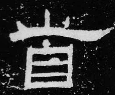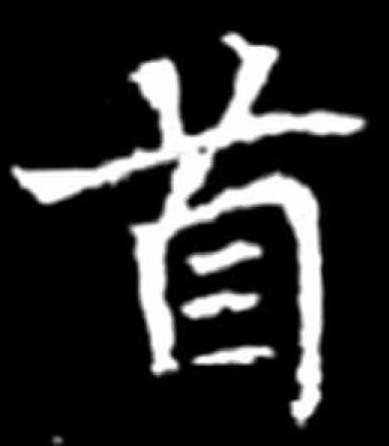 “首”字象頭形,毛髮或存或無。東漢及其後的碑刻,“首”字表示頭髮的部分有的上承小篆作三點,有的上承秦隸作兩點。