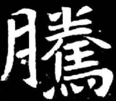 騰騰(腾)Téng现行较罕见姓氏。今天津之武清,河北之黄骅,山东之鱼台、平度,山西之太原,广西之田林,贵州之从江,云南之河口、陇川,四川之合江等地均有分布。汉、壮、傣、土家、阿昌等多个民族皆有此姓。《清通志·氏族咯》 亦收。《中文大字典》 注引《万姓统谱》 云: “腾本姓滕,避难改焉。今开封有此姓。” 汉代有腾是,长乐谒者; 又有腾抚,北海相; 元代有腾香; 清代有腾云辉,任千总,祀昭忠祠。 騰téng❶奔馳。杜篤《論都賦》:“命騰太白,親發狼弧。” ❷騰起,跳躍。司馬相如《上林賦》:“隃絶梁,騰殊榛。”傅毅《七激》:“騰虛鳥踴,莫能執御。” ❸上升。揚雄《甘泉賦》:“騰清霄而軼浮景兮,夫何旟旐郅偈之旖柅也。”王延壽《魯靈光殿賦》:“飛梁偃蹇以虹指,揭蘧蘧而騰湊。” ❹乘,駕。《漢書》賈誼《弔屈原賦》:“騰駕罷牛,驂蹇驢兮。”班固《西都賦》:“陳輕騎以行炰,騰酒車而斟酌。” ❺挪移。應瑒《馳射賦》:“觀者并氣息而傾竦,咸側企而騰移。” ❻用同“媵”。傳送。傅毅《舞賦》:“騰觚爵之斟酌兮,漫既醉其樂康。” 騰“腾”的繁体字。 上一条: 腾 下一条: 滕 腾騰{}五6635①动把东西从这儿移到那儿。西南官话。四川。张慎仪《蜀方言》:「物自此移彼曰~。」②动传;传送。⑴客话。广东惠州、梅县。⑵闽语。广东潮州。◈ 章炳麟《岭外三州语》:「传车曰~,传送亦曰~。」③动稍停,停顿;思索一下,打个主意。⑴兰银官话。甘肃兰州〖 〗。走累了,咱们~一下歇口气儿走吧!⑵西南官话。云南玉溪〖 〗。他要二十块钱儿再我~都不打一个,就掏给他了。湖北随州。④动有意拖延时间。⑴东北官话。东北〖 〗。都什么时候了,你还~着不走‖时间已经很晚了,不能再~了‖时间不多了,请你别~了。⑵西南官话。四川成都〖 〗。大家都~起不开腔‖做家务事,你两口子有啥子~头!⑤动把已熟的食物,放在蒸笼里再蒸蒸热。⑴东北官话。东北〖 〗。再~两个饽饽。⑵冀鲁官话。河北东部〖 〗。馒头早凉了,等~~再吃。⑶江淮官话。江苏北部。《西游记》第七七回:「我有些儿寒湿气的病,要他~~。」⑷西南官话。云南昭通〖 〗。~冷饭‖~馒头。⑥动相随同行;随从;送。⑴客话。广东惠州、梅县、潮州。章炳麟《岭外三州语》:「三州谓行止相随为『~』。」罗翙云《客方言・释言》:「今语人相随从同行止谓之媵。」段玉裁注:「今文媵作~。」⑵闽语。福建。1922年《福建新通志》:「送谓之~。」广东潮州。⑦动还。闽语。福建。1922年《福建新通志》:「还亦谓之~。」又:「以物还人曰~。」⑧动嫁女。闽语。福建。1922年《福建新通志》:「嫁女曰~。」⑨动泼。吴语。浙江绍兴。⑩动颠簸。西南官话。四川成都〖 〗。汽车在坑坑洼洼的路上行驶,坐在上面~得很。湖北随州。⑪动发抖。西南官话。湖北随州。⑫形(人的身)高。吴语。浙江丽水〖 〗、景宁〖 〗。⑬副猛地;忽然。⑴冀鲁官话。河北东部〖 〗。脸~地红了。⑵兰银官话。甘肃兰州:~地起来猛地立起身。⑭副很;甚。西南官话。四川成都〖 〗又〖 〗。饿~了‖吓~了‖人家把他整~了整得厉害。⑮象声撞碰发出的声音。中原官话。河南郑州〖 〗。侯书凡等《河南传统曲目汇编》三弦集第二集:「~,一头碰住迎壁墙。」「~!一头碰到石碑上。」   騰腾(2次) ❶跳跃。或~或倚《士》 ❷谓传语。~众车使径待《离》 騰❶僭踰相侵犯也。《詩經·魯頌·閟宫》: “不虧不崩,不震不騰。” 鄭玄箋:“震、騰,皆謂僭踰相侵犯也。” ❷當作“媵”,送也。《儀禮·公食大夫禮》: “衆人騰羞者,盡階不升堂。” 鄭玄注: “騰,當作媵。媵,送也。” ❸乘匹之名。《禮記·月令》: “是月也,乃合累牛騰馬,遊牝于牧。” 鄭玄注: “累、騰,皆乘匹之名。” 陸德明 《經典釋文》: “騰,大登反。” 騰tengF276 “腾”的繁体。 騰téngT067 “腾”的繁体。 〖騰〗 粵 tang4〔藤〕普 ténɡ ❶ 本指馬跳躍,後來泛指跳躍。莊周《莊子.逍遙遊》:「我〜躍而上,不過數仞而下。」(仞【粵jan6〔孕〕普 rèn】:古代長度單位。) ❷ 飛騰,翻騰。王勃《滕王閣序》:「〜蛟起鳳。」(蛟【粵 gaau1〔交〕普 jiāo】:傳說中一種能引發洪水的龍。) ❸ 傳開,擴散。蘇軾《石鐘山記》:「桴止響〜,餘韻徐歇。」(桴【粵 fu1〔膚〕普 fú】:敲擊。)
