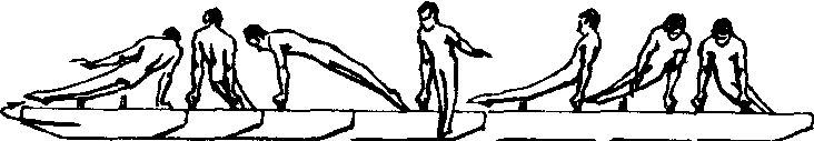 初学时由教练员托扶双脚做慢动作体会动作过程,然后在无腿双环鞍马上分别练习两个沿身体纵轴转体90°,特别是第1个转体90°,要尽量转正,会使第2个转体90°更容易完成。在掌握2个沿身体纵轴转体90°后,便可连接起来进行完整动作的练习,最后过渡到鞍马上练习。