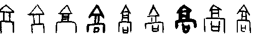 ɡāo象形,甲骨文、金文、小篆象高地穴居之形,高地的穴居较深(一说象建筑物高耸之形),隶定为“高”。本义表示从下到上距离大,引申为高度(从下而上的距离)、高处、超出一般标准或平均水平的、岁数大、高尚的、高明的等。 【辨析】 ❶以“高”作音符构成的形声字一般韵母为ɑo,但声调和声母不同。ɡāo:篙、膏∣ɡǎo:搞、稿、镐、槁、缟∣hāo:蒿∣kào:犒∣qiāo:敲。 ❷高/乔/骄 这三个字都有高的意思,读音相近,是同源字。高 (gāo)高不可指也。借臺觀崇高之形以指之,京、𩫏皆从 ,此高形也。 冂,古“坰”字,界也。高者必大,有坰界也。 与倉、舍同意,皆象築也。 【按】𩫏,即“郭”,城郭。 注释:右亦借象形爲指事而兼意者,一文。 指事字正例一,變例八,凡一百二十九文。 高 ☚ 笑 鎬 ☛ 00000697 |