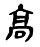 高 甲骨文; 金文; 篆gāo[京(省形,意符)+口(聲符)→高(《説文》:“高,崇也。象臺觀高之形。從冂,口與倉、舍同意。”高,初文像築于高丘上的房屋,古人擇高地建屋而居,因當時低處常遭水患。高,從下向上的距離〈高度〉,從下至上的距離大〈高空〉。引申爲大〈高喉嚨、大嗓子〉,超標準〈高溫、高血壓〉,歲數大〈高齡、高夀〉,族中長者〈高祖〉,尊貴〈高親、高鄰〉,道德水準在一般之上〈高尚〉;“高”與“矮”相對;姓。)] 《詩經·小雅·十月之交》:“高岸爲谷,深谷爲陵。”(高岸陷爲深谷,深谷變爲丘陵。:所記像是一場大地震。) 高(ɡāo)“ ,崇也。象台观高之形。从冂,囗与仓、舍同意。凡高之属皆从高。”(古牢切) 徐锴《系传》:“按《易》曰:‘崇效天,卑法地。’崇,高。囗音韦,与仓舍同意,谓皆室屋垣墙周帀之意。” “高”是个象形字,甲骨文 ,金文 ,皆象台观高大之形。甲骨文中多用为远义,如“高且(祖)”即远祖。战国包山楚简作 。战国文字“高”可用为高低之高,如秦青川木牍:“道广三步,封高四尺,大称其高。”[1]许慎以“崇”释“高”,是同义互训。说“囗与仓、舍同意”意思是粮仓和屋舍都有窗。 高部有三个属字。如“亭”字,云:“民所安定也。亭有楼。从高省,丁声。”“亳”下云:“京兆杜陵亭也。从高省,乇声。”后来的辞书中,《康熙字典》、《辞海》、《辞源》中都立“高”部。“高”可以作声符,如“稿”、“篙”、“槁”、“缟”等。 高gāo(10画)