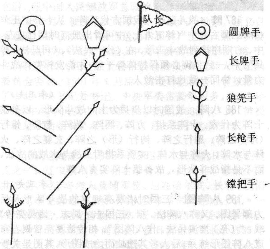 | 释义 | 鸳鸯阵 202 鸳鸯阵明戚家军的纵队战斗队形。戚继光为战胜具有优势火器装备、又长于短兵肉搏、各自为战的倭寇。在既要便于发扬火力,又能减少伤亡的“小而疏散”原则的要求下,以及南方“地多薮泽”,不似北方可“方列并驱”的地理条件下,创用了一种仅有12人编成的鸳鸯阵。《纪效新书》规定:以纵队进攻时,兵士双双并列向前。近似欧洲十九世纪火器时代的“散兵线”和“散兵行”,成为攻守兼备的最先进的阵式。体现了戚继光齐力胜敌的军事思想。
