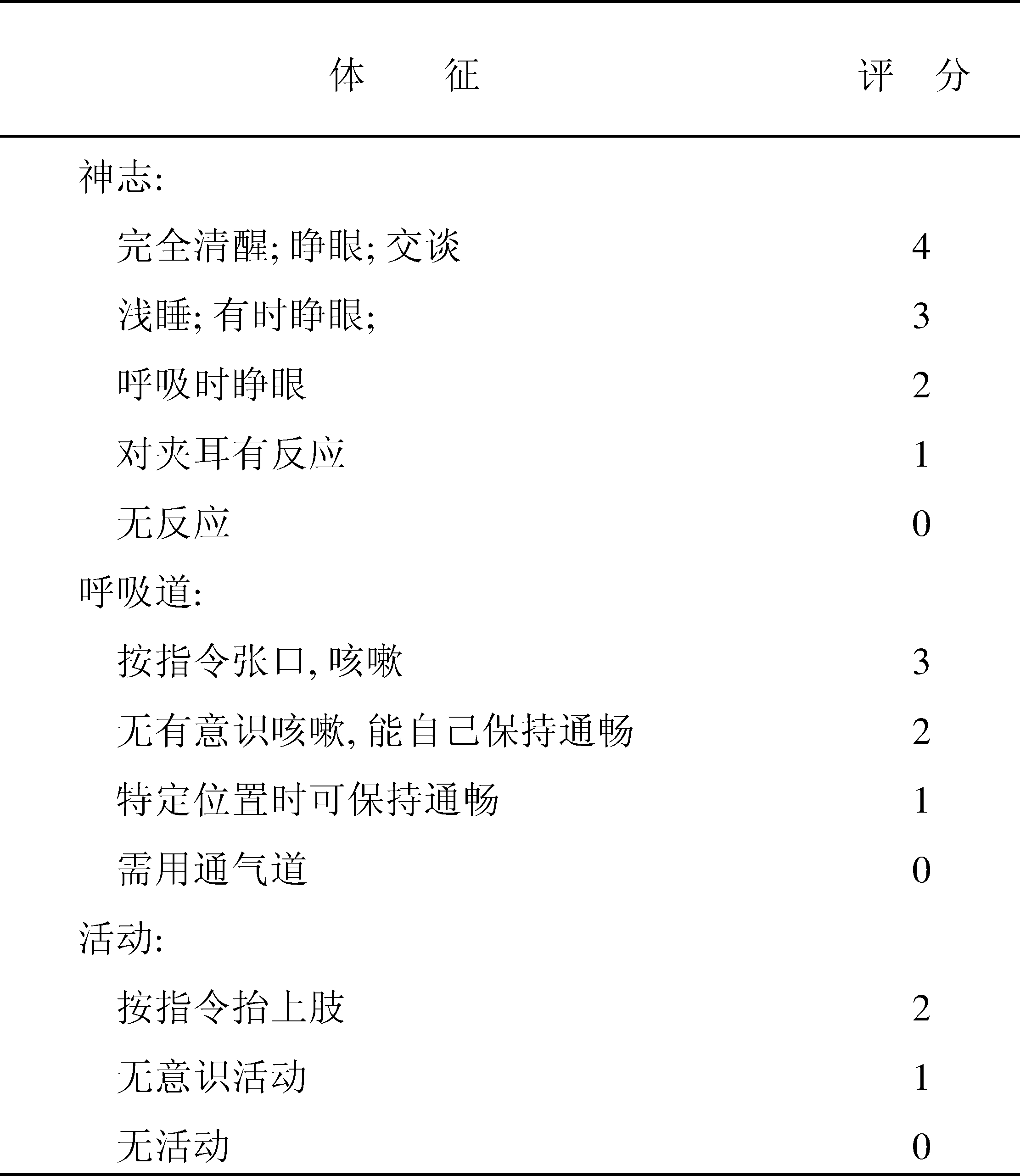 目前常用的麻醉后恢复评分见下表。病情达到以下标准即可转出: