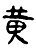 ❹ 牝牡骊黄|人老珠黄|数白论黄|数黑论黄|信口雌黄|飞苍走黄|佩紫怀黄|擎苍牵黄|腾踏飞黄|妄加雌黄 黄黄,甲骨文作  ,金文作   ,《説文》古文作 ,小篆作 。 唐蘭認爲,甲骨文象一個挺胸凸肚、仰面朝天的病人,這種病人叫 “尪”(wāng),甲骨文即是“尪”字的初文。古人以爲,老天可憐尪,因爲擔心雨水會流進他的鼻孔,所以總不敢下雨。而民間爲了求雨,於是有了焚尪祭天的習俗,“黄”(尪)就是用作祭天的犧牲,也就是焚的對象。甲骨文有 “黄”下加 “火”之字,裘錫圭説本是專用於 “焚黄” 的 “焚”字,後來成爲 “焚” 的異體。由此例可知探求文字構形義、本義以及意義演變之難。“黄” 在卜辭中或用本義。銘文或表示黄色,或通 “璜” “衡”,佩玉。或用作人名、地名、方國名。後世文獻多用以表示黄色。 楚簡帛文作 ,沿襲古體。秦簡牘文作 ,古隸典型。 黄huáng