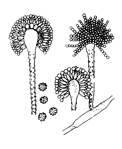 | 释义 | 黄曲霉 黄曲霉huangqumeiAspergillus flavus真菌门、子囊菌纲、曲霉属。腐生菌。菌丝疏松,表面黄绿色,背面无色或略呈褐色。菌丝多分枝,具隔,无性生殖发达,无性生殖时产生大量的分生孢子梗,梗端膨大成球形的泡囊,在泡囊表面又生出呈放射状排列的小梗,每个小梗顶端产生成串的分生孢子,呈黄绿色。由于其有性生殖极少见,所以也常将黄曲霉归入半知菌纲中。黄曲霉分解有机物的能力很强,常用黄曲霉的一些菌系作为酿酒、做酱、制醋的菌种,和生产淀粉酶和蛋白酶。但是有些黄曲霉菌株能产生黄曲霉毒素,可引起人、畜和禽类的肝脏致癌。黄曲霉毒素尤以在发霉的花生中含量较高,估计全世界每年有10万多只禽、畜死于黄曲霉中毒所致(详见“黄曲霉毒素”条)。 ☚ 真菌 蘑菇 ☛ 黄曲霉 黄曲霉Huang qu mei是半知菌类丛梗孢目曲霉属的真菌。菌丝有横隔,为多细胞。进行无性生殖时,形成大量分生孢子梗,梗顶端膨大成顶囊,通常为球形或棒形。顶囊表面以辐射状生出单层或双层小梗,小梗顶端着生成串分生孢子。孢子从黄色变成黄绿色。分生孢子梗基部有一足细胞,细胞壁较厚并与营养菌丝相连。自然界分布广,多生于食品、腐烂水果及潮湿衣物上。黄曲霉群分解淀粉能力强,是发酵工业上的重要菌群,能产生淀粉酶、蛋白酶、果胶酶等酶制剂。产生的曲酸可用作杀虫杀菌剂。某些菌系能产生黄曲霉毒素,特别在花生或花生制品上更易形成,引起人畜中毒死亡和人类癌症。因此在生产中选用菌种时要注意检查。