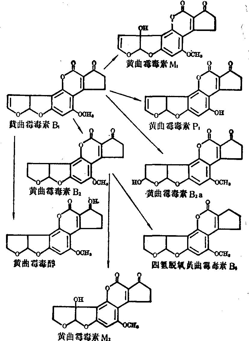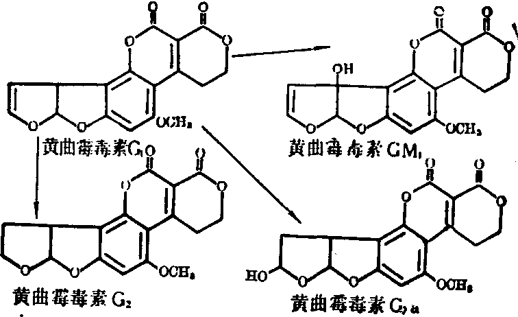图2 黄曲霉毒素G1及其衍生物 黄曲霉毒素及其衍生物的理化性质