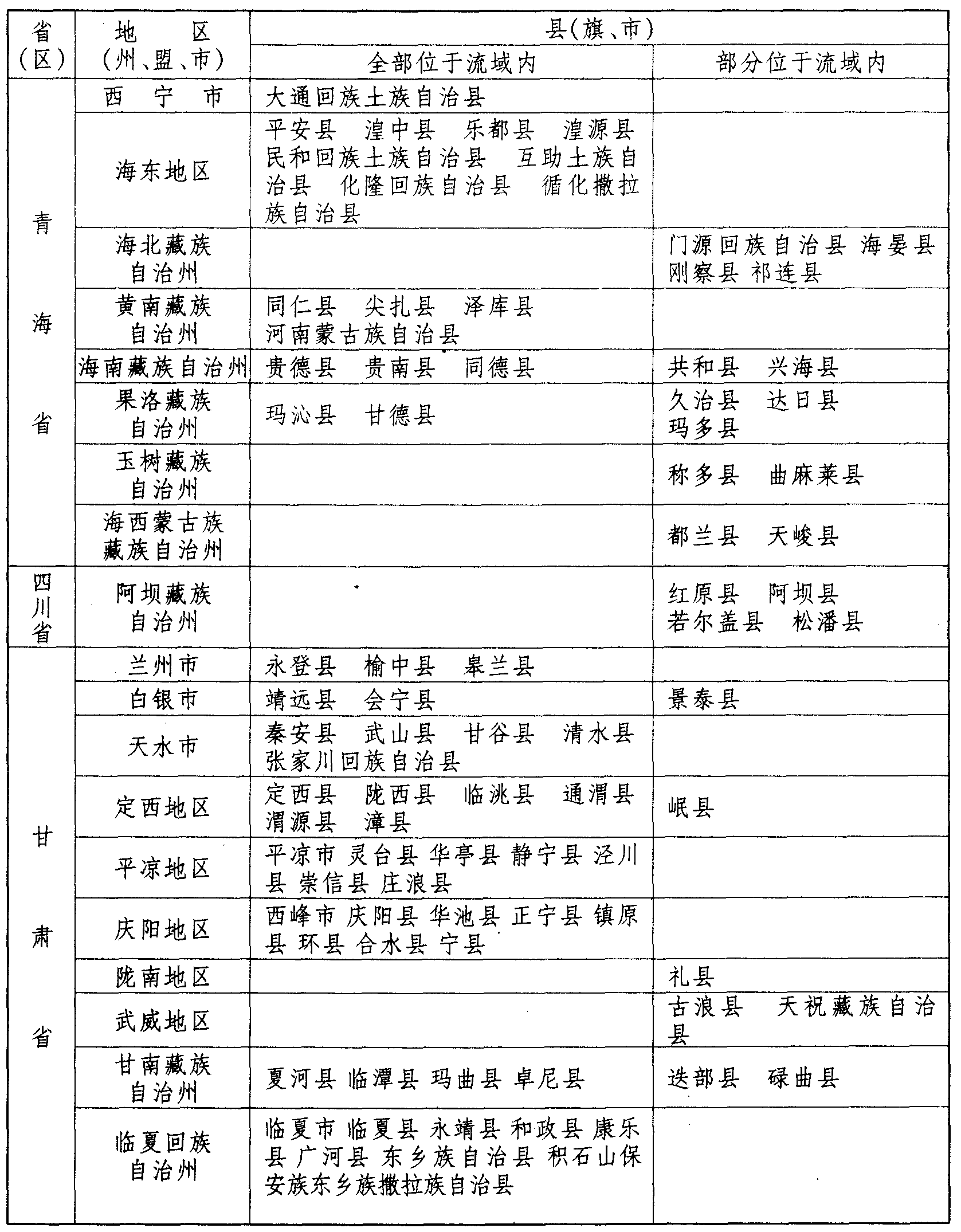 附录五 黄河流域行政区划一览表
