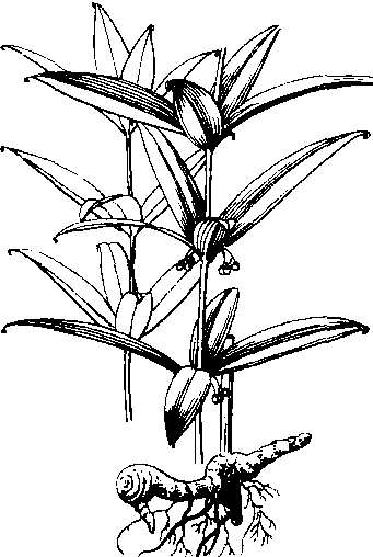 | 释义 | 黄精huáng jīng草名,可入药。道家认为此草得大地之精粹,因称。马戴《期王炼士不至》:黄精蒸罢洗琼杯,林下从留石上苔。张籍《寄王侍御》:见欲移居相近住,有田多与种黄精。 黄精huáng jīng多年生草本植物。叶似短竹,根如嫩姜。可入药。 黄精 黄精草名,又名黄芝、野生姜等。多年生草本。叶似竹而稍短,根如嫩姜,可入药。道教认为这种块根得到了土地的精粹,长服可以轻身延年,所以称为黄精。 ☚ 内观不识因无相,外合明知作有形 天人 ☛ 黄精 黄精汉族民间传说。流传在安徽省青阳县九华山区。故事写九华山曾有一专靠采药治病为生的老人,姓黄名星,人称黄星老人。黄星专门为穷人看病,从不给有钱人治病。可是,有一年大旱,黄星用给财主三太公看病的机会同他斗争,迫使他免租开仓济贫。然而黑心的三太公骗得了药方便关仓,精明的黄星也留了一手。三太公病不见好便砍去了黄星老人的双脚,剜去了他的双眼。黄星爬回山死了,可是他爬过的地方却长出一种树,根能吃,救了山下的百姓。人们认为这根是黄星老人的精血所变,所以取名黄精。从此,黄精成了食中珍品。闻名于国内外,成了九华山著名特产之一。那狠毒的三太公因为药方中缺一味药而病情加重,不久他受到了惩罚。见《九华山的传说》。 ☚ 萨吉尔迫汗的传说两则 黄溪茶 ☛ 黄精《黄精》出处、释义和例句 【出典】旧题晋·张华《博物志·方士》:“黄帝问天老曰:‘天地所生,岂有食之令人不死者乎?’天老曰:‘太阳之草,名日黄精,饵而食之,可以长生。’”又,《文选》三国魏·嵇叔夜(康)《与山巨源绝交书》:“又闻道士遗言,饵术黄精,令人久寿,意甚信之。”又,五代·徐铉《稽神录》记,临川士家一婢,逃入深山中。久之,见野草枝叶可爱,取其根食之,久久不饥。夜息大树下,闻草中动,以为是虎,上树避难。早晨下地,觉其身欻然凌空,若飞鸟。数岁,家人采薪见她,捕之不得。有人猜想她定是服用仙药,才能身轻步疾,便以酒饵引诱,捕得此婢。擒回家后,婢尽述其故,指前所食草叶,乃是黄精。 【释义】黄精,是一种草药,据说服食后能延年,又传说是神仙的食物,或修道人食物。 【例句】①青山围绕,淡烟笼罩;黄精自饱,灵丹自烧。(马致远等杂剧《邯郸道省悟黄粱梦》第三折〔玉翼蝉煞〕)樵夫说那先生以黄精为食粮。元人称道士作“先生”。②你止不过掘黄精和土斲,砍青松带叶烧。(贾仲明杂剧《铁拐李度金童玉女》第二折〔黄钟尾〕)金安寿不肯归道,仙家的黄精不能吸引他。 黄精黄精又名黄芝、菟竹、鹿竹、仙人余粮、救穷草等。古人认为它得坤土之精,所以称黄精,也叫“戊己芝”。它的根象嫩姜,俗名野生姜。二月才生,一支多叶,叶如竹而短,根即使很干燥,也柔软而有脂润。它的根、叶、花和果实都可服用,药效以根部最著。隋时羊公服黄精法说:二月三月采根,以入地八、九寸者为上品。切细之后,一石黄精加水二石五斗煮,除去它的苦味,滤去汤。然后放在囊中榨取汁水。澄清之后,再煎。煎得汁水浓如膏状才止。加入炒过的黑黄豆粉末适量,捏成一枚枚象钱一样大的饼,一天服二枚。可以“补诸虚,止寒热,填精益髓,下三尸虫。” 黄精huáng jīng草名,可入药,道家认为此草得坤土之精粹,故名黄精。李颀《题卢道士房》:“稽首问仙要,黄精堪饵花。” 〗。![]() ![]() 黄精一种植物,相传食之可身轻如燕。传说有一婢女,不堪主人虐待,遁入山中,久饥无粮。一日坐水旁,见野草枝叶可爱,连根食之,味甚美。自是恒食,久之遂不饥,身态轻健。数岁有人伐薪见之,告其主,主使捕之,不得。一日遇其在绝壁下,即以细绳三面捕之,婢乃腾上山顶。其主益惊骇,必欲捕之。或曰:“此婢也,安有仙骨? 不过得灵药饵之耳。试以盛馔,多其五味,令甚香美。置其往来之路。观其食之否。”如其言,果来就食,食讫,不复能远去,遂为所擒,具述其故。问其所食草之形,即黄精也。复使之,遂不能得。见《太平广记》四一四引晋葛洪《抱朴子》。 古代名物 > 醫藥類(上) > 草部 > 根 > 黄精 黄精 huángjīng 亦稱“萎蕤”、“仙人餘糧”、“苟格”、“菟竹”、“垂珠”、“馬箭”、“白及”。百合科植物黄精的乾燥根莖。土爲坤而色黄,因其得坤土之精粹而成,故名。狀似圓錐而不規則,長約三寸,黄白至黄棕色,半透明,質硬易斷。形似鷄頭者,稱鷄頭黄精;形似薑者,稱薑形黄精。主治肺癆咳血,筋骨軟弱,病後體虚。南朝宋·雷斅《雷公炮炙論·黄精》:“黄精葉似竹葉,凡採得以溪水洗净,蒸之,從巳至子,刀薄切,暴乾用。”宋·蘇頌《本草圖經·草部·黄精》:“隋羊公服黄精法云:黄精是芝草之精也,一名萎蕤,一名仙人餘糧,一名苟格,一名菟竹,一名垂珠,一名馬箭,一名白及。”明·馮時可《雨航雜録》卷下:“蓋黄精色黄味甘,土氣之精,野處辟穀者服之,補脾益氣,即不得仙,亦可延年。”