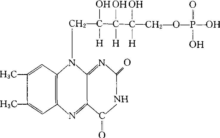 黄素单核苷酸(FMN)是一些黄素酶的辅基,与酶蛋白以非共价键结合,但结合紧密,其结构式如下: