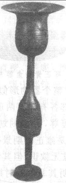 新石器时代龙山文化典型蛋壳黑陶器,1975年山东省胶县三里河新石器时代龙山文化遗址出土。通高二十厘米,仅重四十克。内外色泽漆黑黝亮,大盘口,“杯胆”呈圆锥体全部套入柄中,柄较杯身粗,中间大,两头小,中空,上部承包“杯胆”,柄上有三圈竹节纹,分别饰于中间最大处和靠两头不远处,并以相交多条纤细斜线划纹将柄身分划成棱形格,格内有窄长方形镂孔,圈足呈喇叭形。此器系分段制成后粘接在一起。该杯为龙山文化中晚期蛋壳黑陶柄杯的典型器物,轮制而成,在大盘口和足上留有明显的细密的旋纹。蛋壳黑陶高柄杯,多作为随葬品,见于大中型墓葬中,常置于人骨架之头部或脚部,也有在上肢一侧。一般是单独放置,少与其他陶器混杂安置,被认为是礼器,或是高级奢侈品,仅为当时少数人拥有。现藏于山东省博物馆。