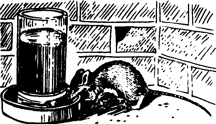 图1 捕鼠器 药物灭鼠。对家栖鼠类一般使用慢性抗凝血杀鼠剂,用稻谷或小麦、玉米渣等作饵料,与药剂按比例配制成毒饵,投放在室内外,每堆放3~5克(室内每堆10克)。中国通常使用0.025~0.05%敌鼠钠盐或杀鼠灵毒饵,0.005%氯敌鼠或溴敌隆毒饵、0.0375%杀鼠迷毒饵。褐家鼠缺水即不能生存,如采用毒水法灭鼠,效果往往优于谷物毒饵灭鼠。常用的毒水有0.025%敌鼠钠盐水溶液,或用0.025~0.05%杀鼠灵水溶液,因毒水适口性差,配制毒水时,需加入5%食糖作引诱剂,加0.1~0.5%曙红或加适量的红墨水作警戒色,防止意外。使用毒水灭鼠,先将毒水装入特制的瓶中,以经常保持一定量的毒水供鼠饮用,减少蒸发量。(图2)