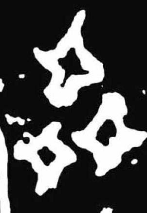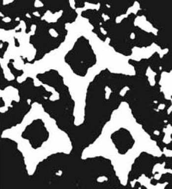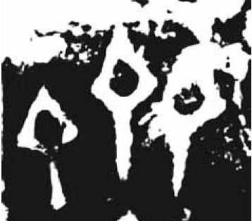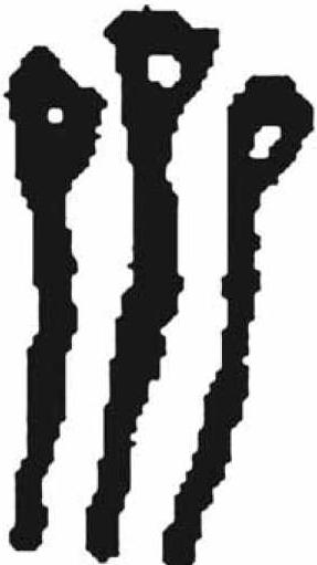 象很多同樣尺寸而排列整齊的東西,大致表達銅簇鑄造情形。