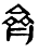 構形難得確解,舊説以爲象麥穗整齊之貌。本義或基本義是整齊, 引申爲等同、全部等義。《古文字譜系疏證》以爲是 “𪗉”的初文, 應是祭祀所用的穀物, 文獻或作 “粢” “秶” “齍”,又與“齋”通用。 又通 “臍” “濟”“躋” “齏”。卜辭或讀 “齍”,裝有穀物的祭器。或用作地名、人名。銘文多用作方國名、人名。