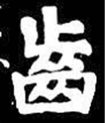 齒齒,甲骨文作   ,金文作  (摹本),《説文》古文作 ,小篆作 。 字形演變顯示,甲骨文字形有簡有繁,最簡者僅存大意。金文第一字形是商代字形,象形。第二、三字形是戰國晚期字形,增“之”或“止”作聲符,後世統一以 “止”作聲符。小篆繼承第三字形,後世沿用,隸定作 “齒”。形聲爲求與語言密合,訛變則多緣於書寫求便,轉而又借用字形相近的字作聲符,這種構形的變化顯示了聲化的自覺。齒、牙渾言無别,析言之,則齒指門齒,牙指臼齒。文獻或用其引申義,如年齡、類别、并列、口頭提及等義。卜辭多用本義,或用作地名。銘文或用作氏族名、地名。 楚簡帛文作 ,沿襲金文第二字形。秦簡牘文作 ,古隸典型。 齒齒, 甲骨文; 金文; 篆chǐ[止聲,象形,像口中牙齒形。(《説文》:“口齗骨也。象口齒之形,止聲。”齒,人和動物嘴裏咀嚼食物的器官〈牙齒〉。排列像牙齒形狀的東西〈齒輪。年齡。馬齒徒增〉。並列〈不齒〉。談到,提及〈齒及〉。)] 《詩經·鄘風·相鼠》:“相鼠有齒,人而無止。”(老鼠尚有牙齒,人却不重舉止。) [春秋] 左丘明《左傳·哀公八年》:“夫魯,齊、晉之唇。唇亡齒寒,君所知也,不救何爲?”(魯國,是齊國和晉國護齒的嘴唇。唇亡齒寒,是你所知道的,爲什麼不去救助他們?) 《孟子·公孫丑下》:“鄉党莫如齒,輔世長民莫如德。”(鄉里最尊重的是年長人,幫助老百姓,最好的莫過於提高他們的道德素養。) 齒(chǐ)“ ,口齗骨也。象口齒之形,止声。凡齒之属皆从齒。 ,古文齒字。”(昌里切) 段玉裁注:“郑注《周礼》曰:‘人生齒而体备。男八月、女七月而生齒。’…… 者象齒,余口字也。” 甲骨文或作 、 ,金文或作 ,均象口中有牙齒之形。卜辞或用其本义,如:“妇好弗疾齒。”(《乙》3164)[1]意思是妇好牙齒没有毛病。战国时,中山王方壶有 ,仰天湖楚简作 ,下象口中有齒形,上面“止”表读音,是后起形声字。甲骨卜辞中,“齒”既可以指人的牙齒,也可以指牛的年齒,另外还有差错、灾害义,如:“吉,亡来齒。”这是由齒牙相切错而引申之义。 《说文》解释“口齗骨”,“齗”与“齦”为异体关系,意思是牙根肉,所谓“齒本肉也”。由于牙齒是整齐地排列在口中,所以“齒”引申为并列或排列。《左传·隐公十一年》:“寡人若朝于薛,不敢与诸任齒。” 齒部有属字四十三个。这些字大多与牙齒有关,如“齦、齡”等。《说文》后的字典、词典大都立“齒”部。 齒 ☚ 齒部 齔 ☛ 齒 (chǐ) 象齒形,从口犯切之“凵”者,口張齒乃見也。“一”爲上下齒中間之虚縫。从止聲。古文 則从凵,象齒形。
