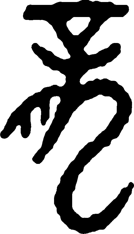 【析形】象形字。甲骨文字形像一种兽首蛇身,头上有冠的怪兽。金文字形的形体,上部是角,角下是头,嘴巴朝左张开露出两颗锋利的牙齿,右边是弯弯曲曲的躯体。小篆字形变化,兽头与兽身部分割裂,隶、楷字形承之。 【释义】《说文》:“鳞虫之长。能幽能明,能细能巨,能短能长,春分而登天,秋分而潜渊。”本义是中国古代传说中的神异动物,具有虾眼、鹿角、牛嘴、狗鼻、鲶须、狮鬃、蛇尾、鱼鳞、鹰爪等九种动物合而为一之形象。龙的身体长,有鳞,有角,有脚,能走,能飞,能游泳,能兴云降雨。 华夏民族的先祖炎帝、黄帝,传说和龙都有密切的关系,相传炎帝为其母感应“神龙首”而生,死后化为赤龙。因而中国人自称为“龙的传人”。龙在中国传统文化的十二生肖中排列第五。封建时代龙作为帝王的象征,也用来指帝王及其相关的东西,如龙颜、龙体、龙廷、龙袍。龙是中国人吉祥的象征,如[龙凤呈祥]、[龙马精神]等成语均与吉庆有关。龙是华夏民族的代表,与西方文化中的dragon并非一事。 【shape analysis】It is the pictograph character.In Oracle,it is shaped like a monster with a snake body and a crowned beast head.While in Bronze Inscriptions,the upper part of the character is a horn,but the lower is a head with the mouth open to the left,with two sharp teeth exposed.The right part of the character is the twisted body of monster.The monster's head was separated from its body in Small Seal script.This shape was followed in Official script and Regular script. 【original meaning】A kind of deified animal in ancient Chinese legend,which has shrimp's eyes,deer's antlers,cattle's mouth,dog's nose,catfish's whisker,lion's mane,snake's tail,fish scales and hawk's claws.龙(It is called dragon in western world)has a long body with scales,antlers and feet.It can walk,fly as well as swim and make it rains.龙is a symbol of the Chinese nation,different from the traditional dragon in western world.