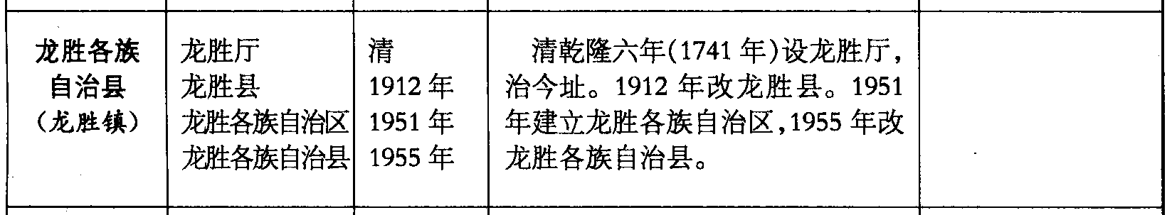 龙胜各族自治县(龙胜镇)龙胜厅龙胜县龙胜各族自治区龙胜各族自治县清1912年1951年1955年清乾隆六年(1741年)设龙胜厅,治今址。1912年改龙胜县。1951年建立龙胜各族自治区,1955年改龙胜各族自治县。