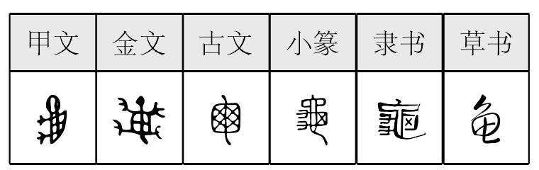 【original meaning】Turtle.It was said that Fu Xi found the Eight Diagrams in shell crack of the tortoise.Archaeological discovery shows that as early as before Shang and Zhou Dynasties,ancient people divined with tortoise shell.The classic example is Oracle Inscriptions.