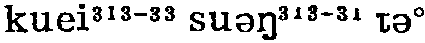 龟孙子gui1sun1zi3(名)王八羔子(骂人语):要是早有你这个技术员,我们也不得遭他~县农机厂敲这么大的棒棒啰!(收85·1·7) 龟孙子二2821①名王八羔子(骂人的话)。西南官话。四川成都〖 〗。1985年第1期《收获》:「要是早有你这个技术员,我们也不得遭他~县农机厂敲这么大的棒棒啰!」②名遇事畏缩的人。晋语。山西忻州〖 〗。吓得他~式的似的。山西定襄〖 〗。③名指妻子有外遇的男人。晋语。山西忻州〖 〗。   龟孙子guīsūnzǐ义同“龟儿子”,用于骂人。李黎《梦境》:“我那个挂名姐夫~硬是做得出来,把我两口破箱子扔到大门外去。”|李佩甫《无边无际的早晨》:“那年冬天,王集乡的计划生育工作受到了县里的严厉批评。县委书记大老王在全县干部大会上点了王集乡的名,并当场撤销了乡党委副书记老黄的职务。王集乡的干部一个个像~似的耷拉着头,而后扛着‘黑旗’回乡。” |