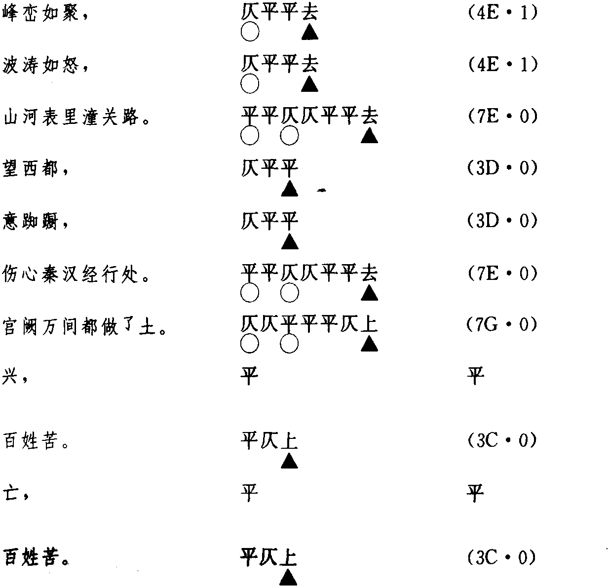 这首曲,共押九个字韵,详况如下: 聚 读音j·ü(ˋ)。才句切,去,遇韵。为ü韵目,属u—ü韵部。 怒 读音n·ü(ˋ)。乃故切,去,暮韵。为u韵目,属u—ü韵部。 路 读音l·u (ˋ)。洛故切,去,暮韵。为u韵目,属u—ü韵部。 都 读音d·u (-)。当孤切,平,模韵。为u韵目,属u—ü韵部。 蹰 读音ch·u (ˊ)。直诛切,平,虞韵。为u韵目,属u—ü韵部。 处 读音ch·u (ˋ)。昌据切,去,御韵。为u韵目,属u—ü韵部。 土 读音t·u (ˇ)。他鲁切,上,姥韵。为u韵目,属u—ü韵部。 苦 读音k·u (ˇ)。康杜切,上,姥韵。为u韵目,属u—ü韵部。 苦 读音k·u (ˇ)。康杜切,上,姥韵。为u韵目,属u—ü韵部。 在今韵方面,这九个韵字所押的韵是u—ü韵部(第610韵部)。 在古韵方面,押虞韵(上平10)、模韵(上平11)、姥韵(上声10)、御韵(去声09)、遇韵(去声10)、暮韵(去声11)。 ☚ (21)白朴《 [中吕宫]阳春曲·从来好事天生俭》 (23)张可久《[中吕宫]卖花声·美人自刎乌江岸》 ☛ |