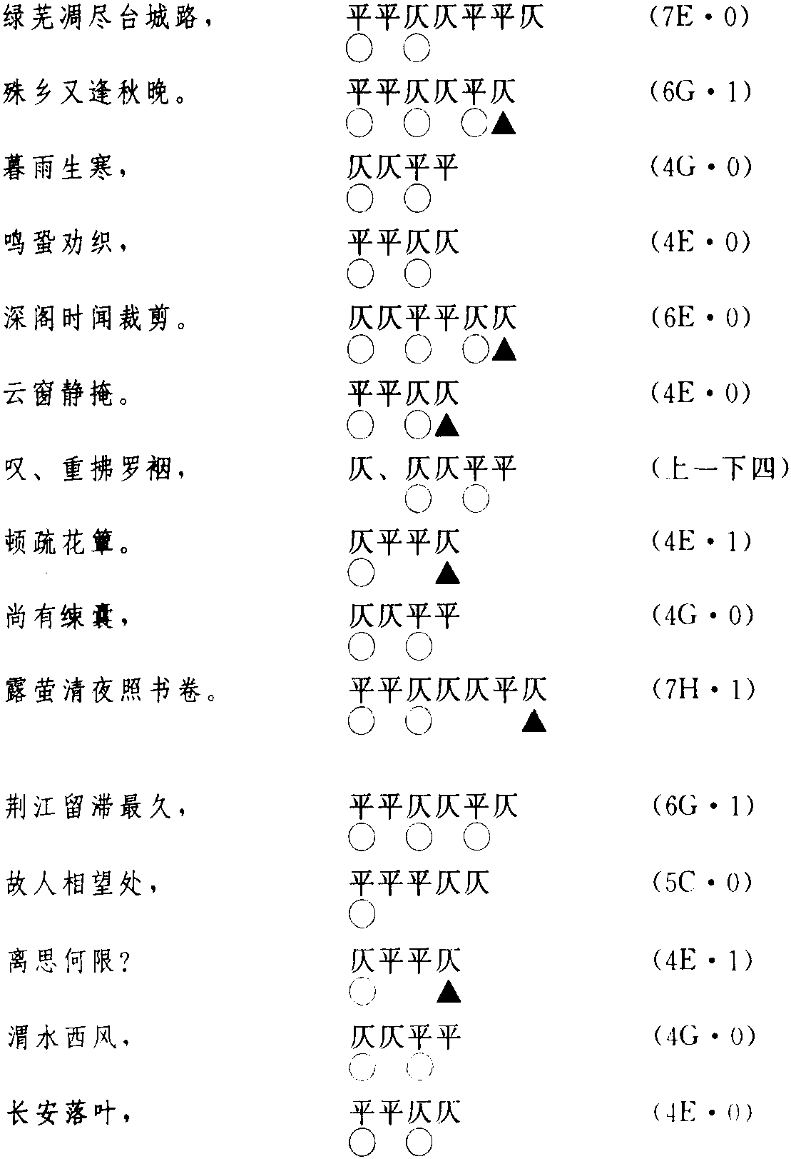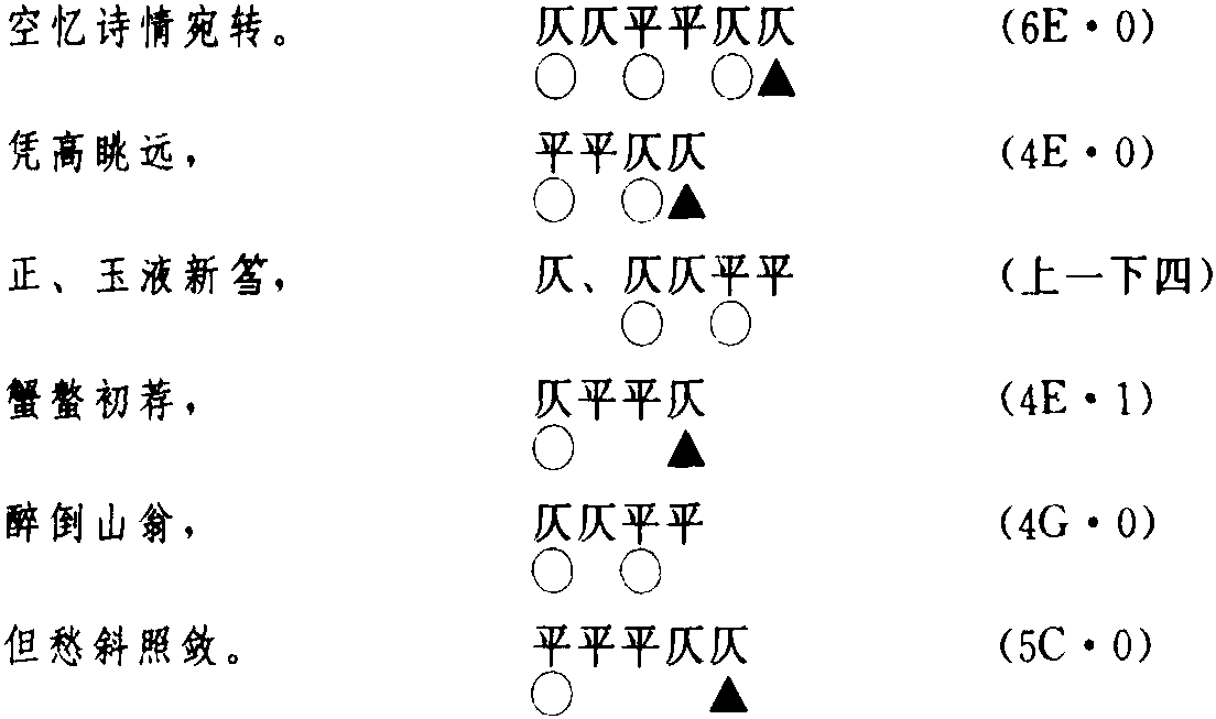 这首词,共押十个仄声韵,前片5个,后片5个。详况如下: 晚 读音·uan (ˇ)。无远切,上,阮韵。为uan韵目,属an—ian—uan—üan韵部。 剪 读音j·ian (ˇ)。即浅切,上,狝韵。为ian韵目,属an—ian—uan—üan韵部。 掩 读音·ian (ˇ)。衣俭切,上,琰韵。为ian韵目,属an—ian—uan—üan韵部。 簟 读音d·ian (ˋ)。徒念切,去,韵。为ian韵目,属an—ian—uan—üan韵部。 卷 读音j ·üan (ˋ)。居倦切,去,线韵。为üan韵目,属an—ian—uan—üan韵部。 限 读音x ·ian (ˋ)。胡简切,上,产韵。为ian韵目,属an—ian—uan—üan韵部。 转 读音zh·uan (ˇ)。知恋切,去,线韵。为uan韵目,属an—ian—uan—üan韵部。 远 读音·üan (ˇ)。云阮切,上,阮韵。为üan韵目,属an—ian—uan—üan韵部。 荐 读音j·ian (ˋ)。在甸切,去,霰韵。为ian韵目,属an—ian—uan—üan韵部。 敛 读音l·ian (ˋ)。力验切,去,艳韵。为ian韵目,属an—ian—uan—üan韵部。 在今韵方面,以上十个韵字,所押的韵是an—ian—uan—üan韵部(第210韵部)。 在古韵方面,押阮韵(上声20)、产韵(上声26)、狝韵(上声28)、琰韵(上声50)、霰韵(去声34)、线韵(去声35)、艳韵(去声55)、韵(去声56)。 ☚ (43)苏轼《水龙吟·似花还是非花》 (45)柳永《雨霖铃·寒蝉凄切》 ☛ |