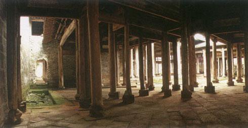 中国南方盛行一种叫做“天井式民居”的院落民居。 在中国传统建筑中,空间比较狭小而高的庭院通常称为天井,多见于南方湿热地区,这种天井有利于建筑通风。 中国南方炎热多雨且常年潮湿,多山地丘陵,人稠地窄,民居布局重视防晒通风,也注意防火,所以多建天井民居。其基本单元是以横长方形的天井为核心,四面或左右后三面围以楼房,阳光射入较少;高耸的天井利于通风;正房即堂屋朝向天井,完全开敞,可见天日;各屋都向天井排水,民间称之为“四水归堂”,“有财不外流”的寓意。 院落外围常耸起“马头山墙”,又称为“封火山墙”,是南方院落民居造型中的一大特色。墙头都高出于屋顶,轮廓建成阶梯状,变化丰富,有一阶、二阶、三阶之分。封火山墙的砖墙墙面以白灰粉刷,墙头覆以青瓦两坡墙檐,白墙青瓦,明朗而雅素。  安徽休宁溪头的三槐堂 |