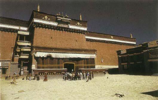 扎什伦布寺 在西藏,最宏伟美丽的建筑永远是寺庙。在日喀则,它的代表是扎什伦布寺。 扎什伦布寺,是全国重点文物保护单位。藏传佛教格鲁派(黄教)寺院,后藏地区最大寺庙。与拉萨“三大寺”合称西藏黄教“四大寺”,但其历史地位却远远高于其他三寺,仅次于达赖政权的中心布达拉宫。它的显赫源于它作为后藏政治中心,历世班禅的驻锡之地的地位。其实,不仅是历世班禅就连最初的达赖活佛也诞生于此。 位于日喀则市西部尼色日山南坡。始建于明正统十二年(1447),由宗喀巴弟子根敦朱巴(达赖一世)兴建。明隆庆年间(1567-1572)班禅四世罗桑却吉坚赞扩建。 扎什伦布,意为吉祥须弥山。依山傍水,绕以城垣。建筑面积30万平方米。寺殿楼宇,层叠错落。主殿高3-4层,重檐歇山式鎏金铜瓦顶,殿内画栋雕梁。建筑群的壮伟规模,豪华建设,磅礴气势,仅次于布达拉宫。 全寺总体布局采用黄教经学院传统手法,分宫殿(班禅拉章)、勘布会议(后藏地方政府最高机关)、班禅灵塔殿、经学院四部分。清道光二年(1822)驻藏大臣文干赴后藏巡阅时,曾作《扎什伦布》二首,其一云:“岩山镇琳宫,高标倚碧空。滦阳瞻梵宇,结构此间同。”所说滦阳离宫即承德避暑山庄,其北之须弥福寿之庙,即仿扎什伦布寺而建。 寺院共有经堂56座、经学院4个、康村64个、大小金顶14座、房屋236间,规模宠大,宛若山城。其中四个经学院,名桑林、夏孜、吉康、阿巴,分别教授佛教显宗和密宗。寺内佛堂陈列著清乾隆帝巨幅画像,和元以来中央皇帝封赐与班禅和金玉印册,及赠予各世班禅的各种礼品等,都已成为为弥足珍贵的文物。 在整个寺内,最引人注目的无疑是强巴佛殿。强巴佛殿又称弥勒佛殿,1914年由九世班禅主持兴建,殿高30米,分没冠、面、胸、腰、脚五层殿堂,五层殿堂环绕上升,都可清晰看到大殿正中的大铜佛。 大铜佛系“世界最大”。其莲花座高3.8米,坐像高22.4米,总高达26.2米,像面长4.2米,耳长2.8米,手宽约1.6米,中指长约1.6米,脚长4.2米,肩宽11.4米,佛像鼻孔可容一成年人。由110名工匠花了四年时间才完成。1985年10月,喇嘛为大佛换袈裟,用了各种绸缎3100米,丝线18公斤,6个人赶制40多天,可见其大。 大铜佛不仅高大,而且珍贵,造此像用紫铜23万多斤,黄金8000多两,钻石32颗,珍珠300多粒,珊瑚、琥珀、耳石等有1400多颗,其中像眉间嵌的大金刚钻石直径约3公分左右,有核桃般大,佛身有直径1公分左右大金刚钻石30颗。真可谓“佛靠金装”了。 汉佛堂又称甲那拉康,这在西藏其它寺院是没有的。它位于四世班禅灵塔殿西侧,是七世班禅丹必尼玛在乾隆年间所建。殿内专设一室供奉乾隆皇帝画像原作,像前有一“道光皇帝万岁万岁万万岁”的牌位。在陈列厅还珍藏著清朝王室赐给历世班禅的金册金印、玉册玉印等无价之宝,以及各种礼品。 曲康夏是四世班禅灵塔殿,是扎什伦布寺最早的灵塔殿。灵塔高约11米,塔身以银皮包裹,遍身珠宝镶嵌。该灵塔用去黄金2700两、白银33000两、铜39000公斤、绸缎9000多尺,各种珍珠宝石不计其数。 释颂南捷即十世班禅灵塔殿。这是50年代以来,国家投资最多建筑规模最大的一座寺院灵。塔,其中,祈殿高33.17米,总建筑面积1933平方米。为此,国家拨专款6404万元,共用黄金614公斤、白银275.22公斤以及其它许多建筑用料。十世班禅大师灵塔面积为253平方米,塔身高11.55米,以金皮包裹,遍镶珠宝。共用宝石868个,珠宝24种6794颗,还有大陨石1个,金制护身符13个,琥珀445个。 经过国家拨巨款重修,如今的扎什伦布寺更加宏伟壮观,金碧辉煌。