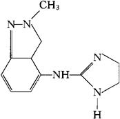 | 释义 | 吲达尼定 C11H13N5=215.26 CAS-85392-79-6 4-(2-咪唑啉-2-基氨基)-2-甲基-2H-吲唑。 4-(2-Imidazolin-2-ylamino)-2-methyl-2H-indazole. N-(4,5-二氢-1H-咪唑-2-基)-2-甲基-2H-吲唑-4-胺。 N-(4,5-Dihydro-1H-imidazol-2-yl)-2-methyl-2H-indazol-4-amine. 抗高血压药,α-受体刺激药,α2-受体阻滞药。 Indanidine. INN,USAN.