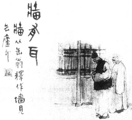 【作品赏析】: 此图为《北京风俗画》册页之一,全册计三十四图,描绘了旧北京的人情风貌。 《墙有耳》是深刻揭露封建军阀专制独裁、特务横行的作品。民初的北京,正处在袁世凯的反动统治下,暗探密布,动辄杀人;人民失去言论行动的自由,在茶馆酒肆、饭店会堂等公共场所,处处贴著“莫谈国事”的红布条和纸条。 画面以茶馆为背景,在挂著“雨前”牌子的檐前,站著两个暗探,他们正在偷听喝茶者的谈话。在那时的茶馆里,店主怕招来横祸,故常提醒顾客:“莫谈国是贴红条,信口开河祸易招;仔细须防门外汉,隔墙有耳探根苗。”画家用漫画式的表现手法,揭露了军阀统治的黑暗、反动和虚弱的本质;同时也反映了人民追求民主自由的要求。陈师曾这种敢于同军阀作斗争的精神,为人所称道。 他的人物画都是从生活中来的,目光敏锐,观察深入,落笔简练。我国漫画家丰子恺认为,陈师曾的小幅人物画“是中国漫画的始源”。 陈师曾的人物画对丰子恺、赵望云都曾有一定的影响。 陈师曾的绘画创作主要活跃在民国以后,当时北京画坛临摹“四王”成风,惟师曾能走出画室,到街头巷尾进行写生,从生活感受中进行创作,《墙有耳》就是这样画出来的。人们只知陈师曾的山水、花卉跳出了前人的窝臼,取得了卓越的成就,殊不知他的人物画也是独树一帜,自有面貌的。 。  现代 陈师曾 《北京风俗画》册页之一 纸本著色 纵28.6厘米 横34.6厘米 藏中国美术馆 |