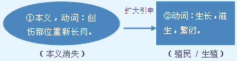 字源解说 直,既是声旁也是形旁,“植”的省略,表示栽培、使生长。殖,篆文 = (歹,骨肉创伤)+ (直,即“植”,使生长),表示使创处重新生长。造字本义:创伤部位重新长肉。隶书 将篆文的 写成 。 附 文言版《説文解字》:殖,脂膏久殖也。从歺,直聲。 附 白话版《说文解字》:殖,脂膏久存而生虫。字形采用“歹”作边旁,采用“直”作声旁。 引申线索