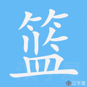 篮,篆文=(竹)+(监,看管),造字本义:古代供幼儿活动的竹编船形器具,可以左右推摇。